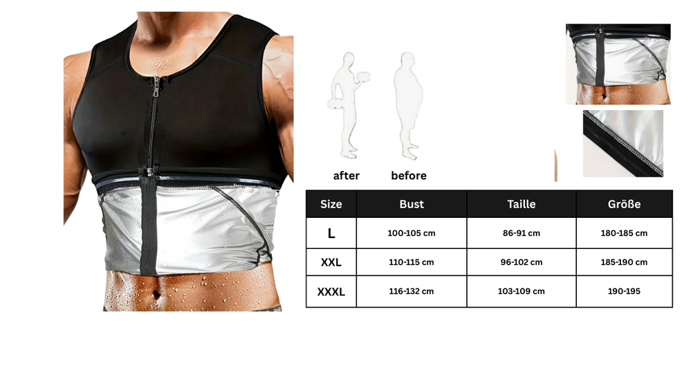 Herren Sauna Schweiß Weste mit Reißverschluss – Neopren Taillentrainer für Gewichtsverlust & Muskelaufbau.